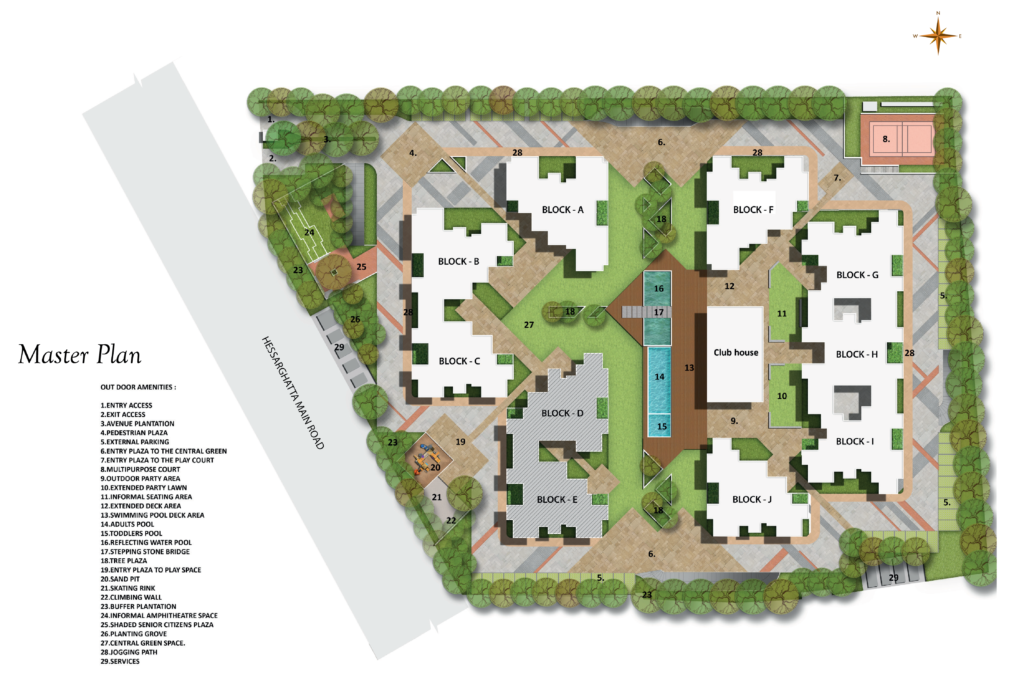 Aside from the fact that it has a premium style with the best ever amenities, it has the advantage of being located well – on Main Hessarghatta Road, very close to key industries and workplaces like WIPRO and BEL. The location is a fast growth area and the city’s plans for upcoming new infrastructure assures good returns in the near future. The property is just 5 KMs from Yeshwantpur Railway station and 2 Kms from Jalahalli junction. It is close to Bengaluru’s best international schools. And needless to say, it has quick connectivity to the international airport.