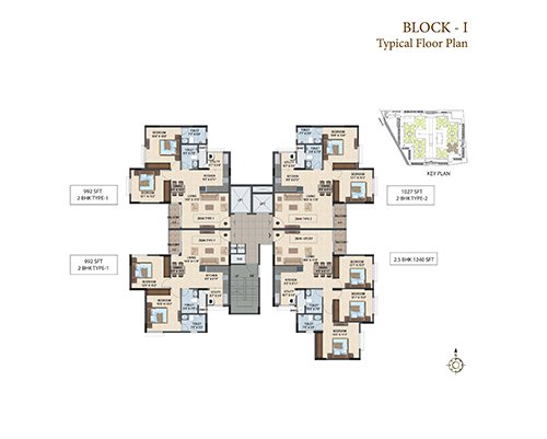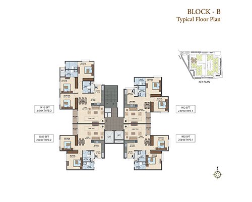 Sattva Laurel Heights offers 434 apartments with 4 flats on a floor along with 2 lifts and the best ever spatial planning. Available are 2 BHK apartments with floor space of 992 sq. ft. and 1027 sq. ft. It has an excellent city view & courtyard view from the balcony. The amenities here are premium and promises its residents a well- rounded lifestyle. It has well-planned outdoors with aesthetically designed spaces for recreation and children’s play, ample parking spaces that also include two basement floors and surface car parking.